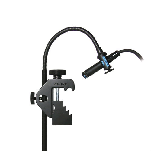 Sistema de montaje que permite fijar el micrófono en un lateral del tambor. El adaptador de tipo flexo ofrece una óptima orientación del micrófono, permitiendo insertarlo en los espacios horizontales o verticales de la mordaza, para una mayor flexibilidad.